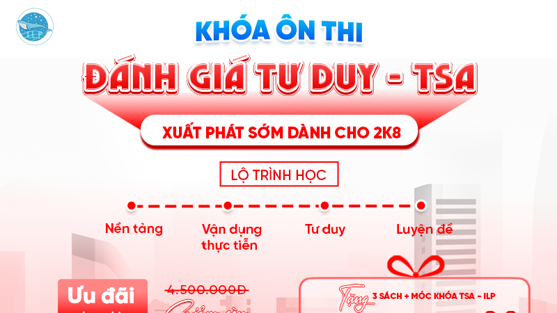 Tham gia khóa học TSA luyện thi Đánh Giá Tư Duy miễn phí dành cho học sinh 2K8, giảng dạy bởi đội ngũ ILP. Định hướng, bứt phá điểm số 8x-9x!